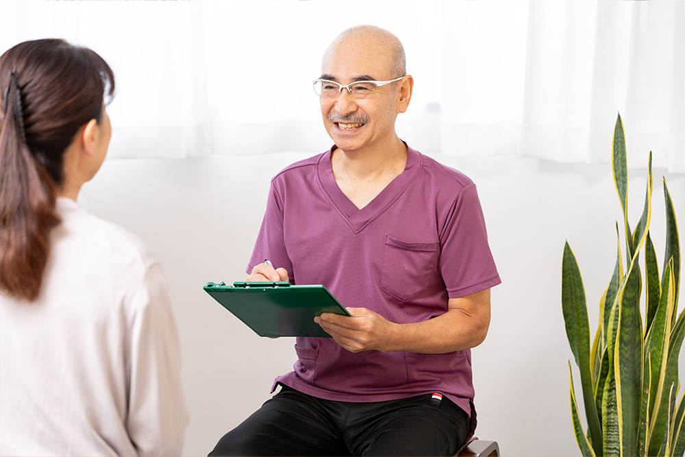 施術時間は20〜30分ほど。そして、それと同じくらい大切にしているのが、日常生活でのアドバイスや身体の使い方の指導です。